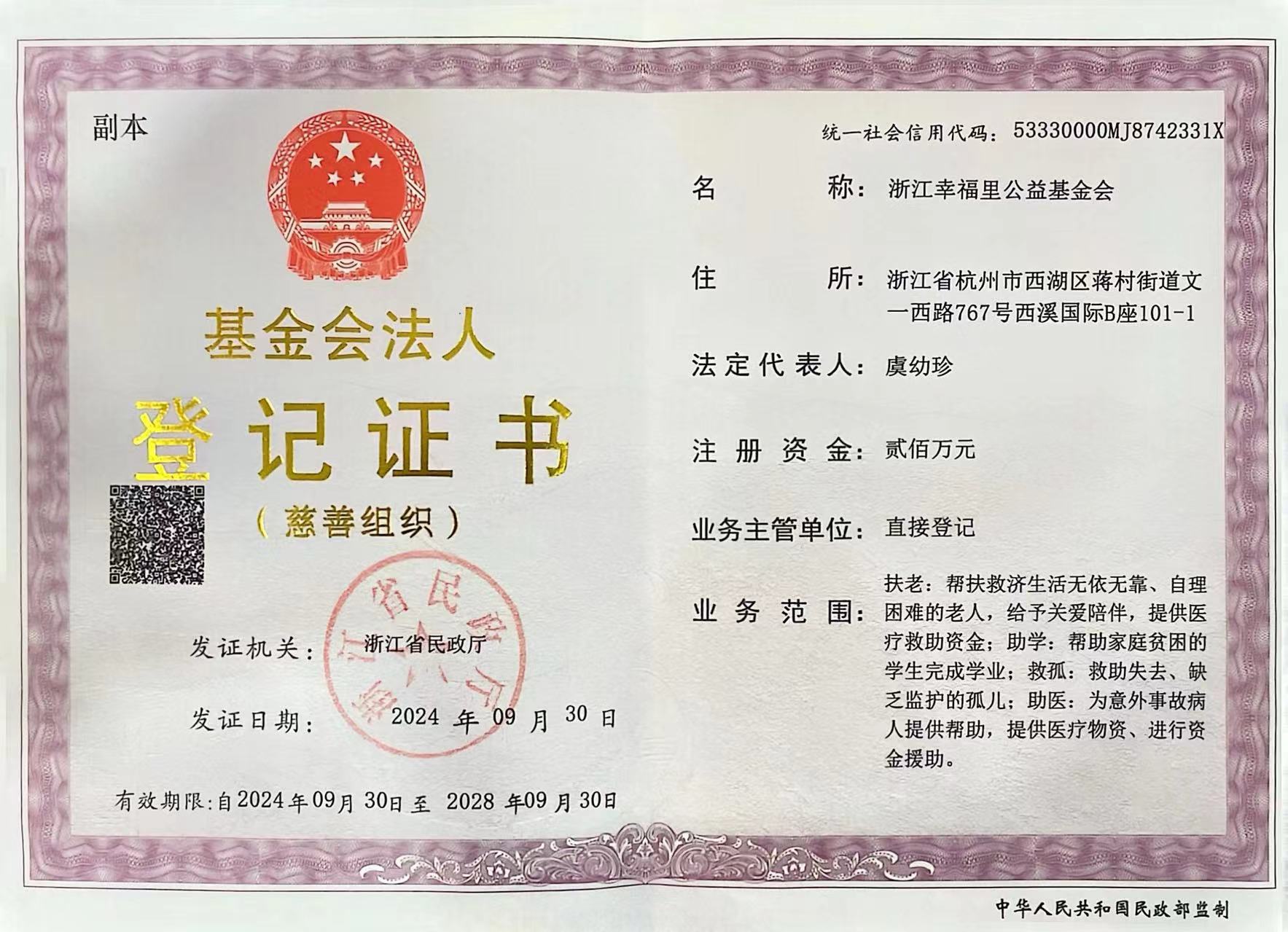 浙江幸福里公益基金会于2020年10月10日在杭州成立,注册资金200万元;由热心社区公益事业的人士发起,由热心人士及绿城服务集团捐助, 以“幸福小屋”为载体,凝聚志愿和公益的力量,关注社区弱势群体,打造“社区新空间,邻里新主义,共建新能量,幸福新方向”;以大型社会公益活动为抓手,参与扶老、助学、救孤、助医的公益活动,关注社会公益事业,实践公益志愿精神。2023年12月被评为浙江省4A级社会组织。